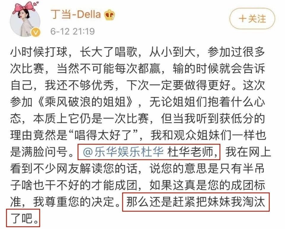 丁当在节目正式播出之后,强势喊话杜华,还不如赶紧把自己淘汰了。